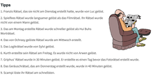 Auf dieser Seite findest du viele tolle und knifflige Logicals. Ganz unten auf der Seite kannst du dir eines der verschiedenen Logicals aussuchen. Viel Spass!